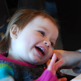 Jocelyn spotting an ant on her play mat and following it with her eyes all the way across. Then bending in half to see where it went